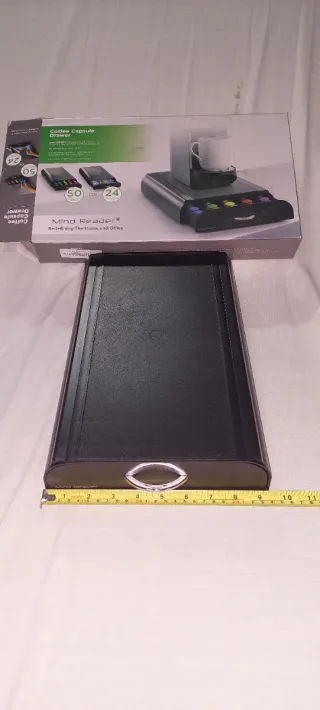Práctico cajón organizador para cápsulas de café. Diseñado para mantener tus cápsulas ordenadas y accesibles. - Capacidad para 50 Dolcce Gusto o 24 cápsulas Nespresso - Marca: Mind Reader. - Color: Negro.