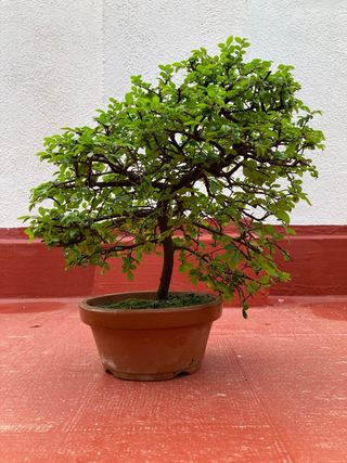 Precioso bonsái de Ulmus parvifolia, también conocido como olmo chino. Ideal para coleccionistas o para iniciarse en el arte del bonsái. - Tronco con carácter. - Ramificación detallada. - Hojas pequeñas y densas.