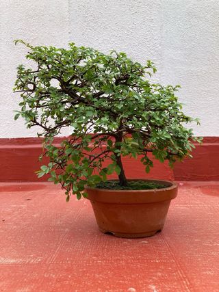 Precioso bonsái de Ulmus parvifolia, también conocido como olmo chino. Ideal para coleccionistas o para iniciarse en el arte del bonsái. - Maceta de terracota