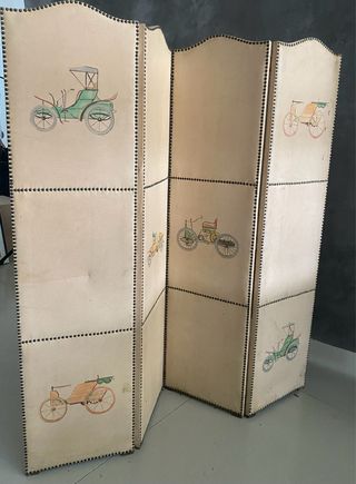 Biombo antiguo de piel con coches