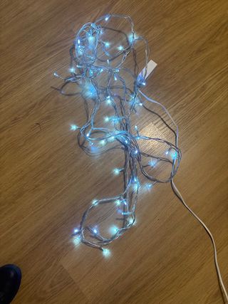 Luces LED de Navidad en color azul. Ideales para decorar en estas fiestas son 3 unidades(cada una 9€) (si te las quedas las 3= 17€!) lucen todas 6 opciones diferentes de intermitencia - Cable verde.Bombillas LED blanco frio. NO son de exterior 2 de 5mts luces y 1,5mt hasta enchufe 1 de 5,5 mts
