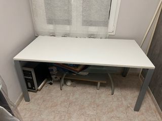 Mesas de oficina , se usaban de escritorio , madera de calidad y patas de metal muy resistentes La mesa de las patas gris viene con la cajonera de la foto de tres cajones Tengo otra mesa igual pero con las patas blancas pero sin cajonera La mesa patas gris con cajonera 80€ La mesa patas blancas 60€ Las dos por 120€ Venir a buscar, ayudo a desmontarlas En 2 semanas se desmontan y si vienes a verlas estarán desmontadas