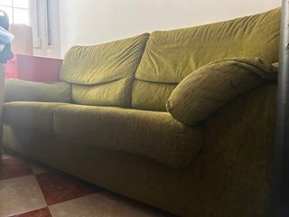 Sofá de dos plazas con tapicería de tela. - Desgaste normal por el uso. - Venir a recoger y bajar de un primer piso sin ascensor. Medidas aproximadas 1,70cm/1,75cm de largo 1 metro de fondo En principio solo se puede bajar por el balcón. Nosotros lo subimos en su día con un par de cuerdas de obra o pulpos del coche. (No recuerdo si se puede bajar por la escalera al ser algo estrecho, se podría probar) para mas información sobre el balcón y fotos para ver si se os hace posible o no, no dudéis en contactar conmigo sin problema. Simplemente nos lo queremos quitar de encima por próxima reforma en la habitación.