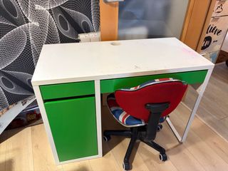 Se venden dos escritorios MICKE de IKEA. Son prácticos y funcionales para cualquier espacio. El blanco tiene 2 baldas en el interior, aunque despegados algunos detalles y pequeños rasguños debido al uso El que combina blanco y madera tiene algún desgaste y le faltan los tornillos de una bisagra de la puerta. A pesar del uso, las estructuras están en buen estado (adjunto fotos de todos los desperfectos) Urge vender por reformas. Se entregan en Sant Celoni en calle peatonal donde no se puede acceder con coche pero fácilmente transportables entre 2 personas o con carretilla o similar. 60€ los dos escritorios