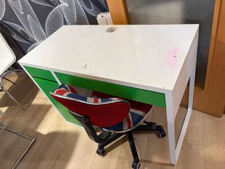 Escritorio infantil con un diseño moderno y funcional. - Estructura principal en blanco. - Cajones y detalles en color verde vibrante. - Fabricado con materiales resistentes. AVISO ⚠️ Con algunos desperfectos en la parte plana como podeis ver en la foto, entrego tal cual, precio algo negociable