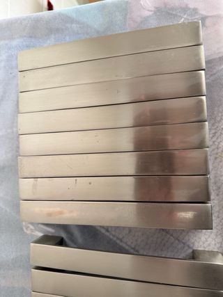 Conjunto de 16 tiradores cuadrados. - Material: Acero inoxidable. - Diseño: Cuadrado.