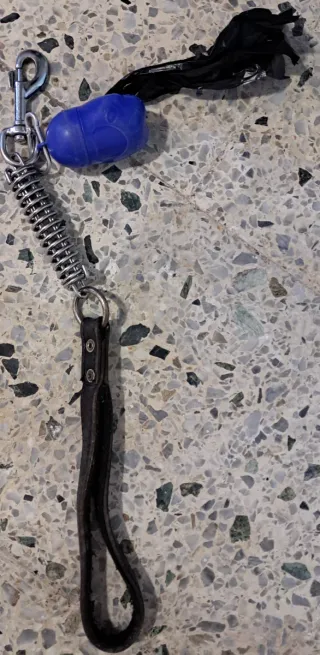 Correa para perro con ajuste y argollas. - Material de cuerda resistente. - Detalle de ajuste de plástico gris. - Dos argollas metálicas para sujeción. Tengo 2 unidades diferentes a 6€ cada una.