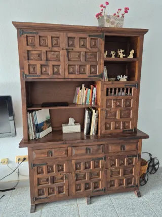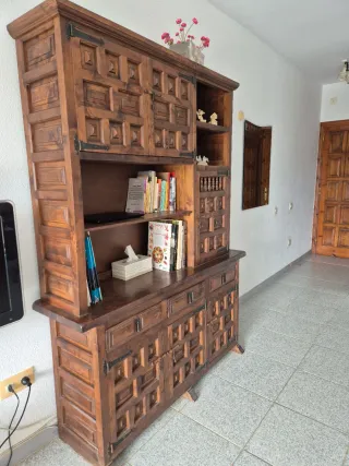 Mueble de comedor con un diseño clásico y elegante. - Acabado en madera oscura. - Múltiples compartimentos para almacenamiento. - Puertas con detalles tallados. - Cajones prácticos. - Muy robusto Se escuchan ofertas