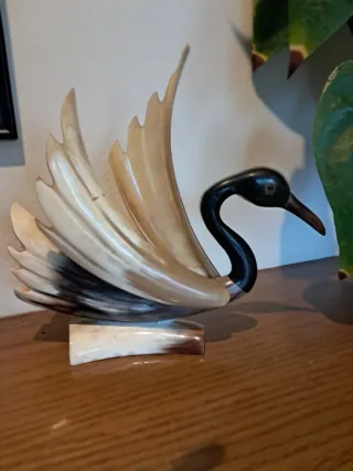 Elegante figura decorativa de cisne. - Material: Nácar. - Diseño detallado de las alas.