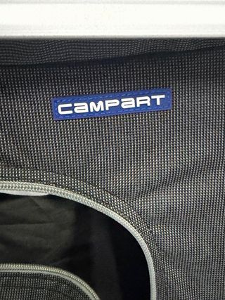 Armario de camping CAMPART con estructura de metal y tela. - Diseño plegable y fácil de transportar. - Múltiples estantes para organizar tus pertenencias. - Puerta frontal con cierre de cremallera.