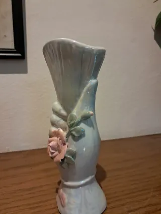 Jarrón de porcelana con mano y rosa