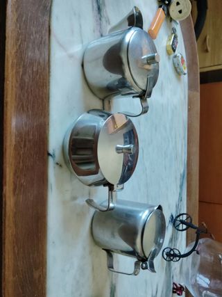 Compuesto por: - 1 Tetera. - 1 Azucarero. - 1 lechera. Ideal para calentar la leche y el agua del te con máquina cafetera.