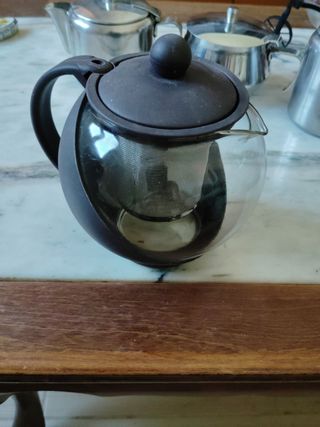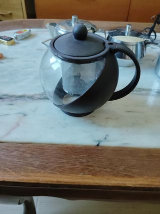 Tetera con un diseño moderno y funcional. - Cuerpo de cristal transparente. - Tapa y asa de plástico negro.