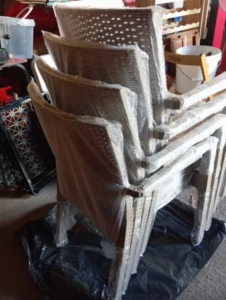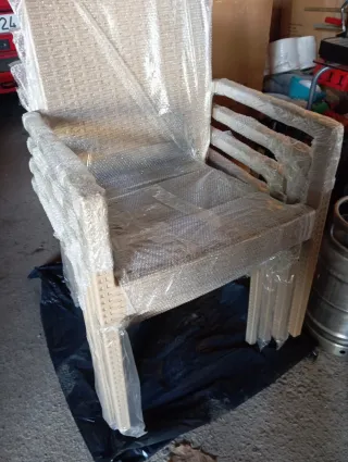 Conjunto de cuatro sillones para exterior, perfectos para tu terraza o jardín. Su diseño es moderno y funcional. - Apilables para un fácil almacenamiento. - Patas resistentes para mayor estabilidad.