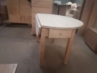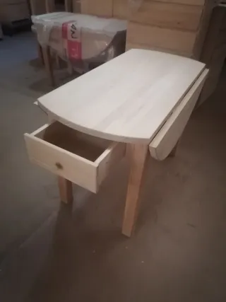 Mesa de cocina de madera con un diseño práctico y funcional. Ideal para optimizar el espacio. Fabricada en madera de pino macizo - Cajón integrado con tirador.