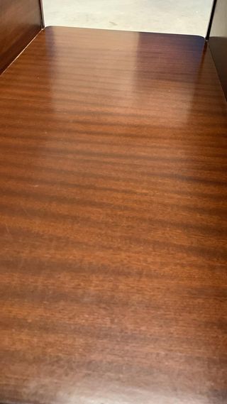 Conjunto de dos mesitas de noche de madera. Diseño clásico con un cajón y un estante. Tirador redondo en cada cajón. Son un poco más oscuras de lo que parecen en la foto. Miden 60 cm alto x 42 cm ancho x 35 cm profundo. El pack de las dos juntas por 30€. Nota: hay una cómoda a juego en mi perfil