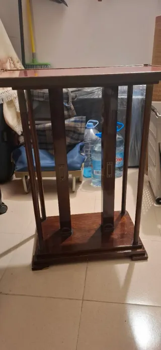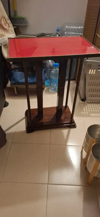 Mesa antigua de madera y cristal