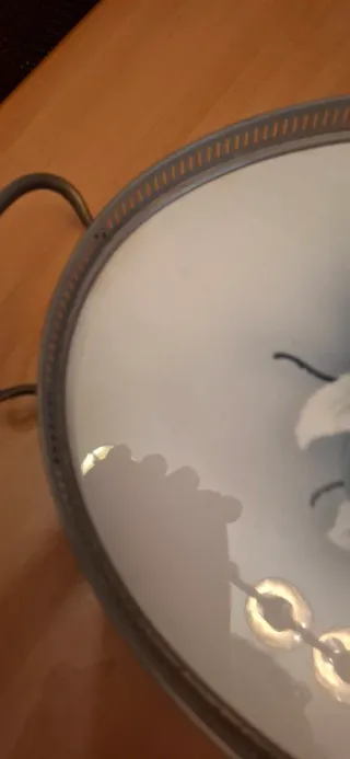 Bandeja de porcelana con asas metálicas