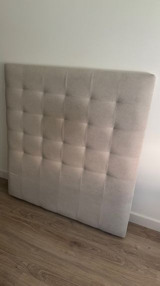 Cabecero de cama tapizado con un diseño moderno y elegante para cama de 1,05 - Acabado en tela. - Color beige neutro.