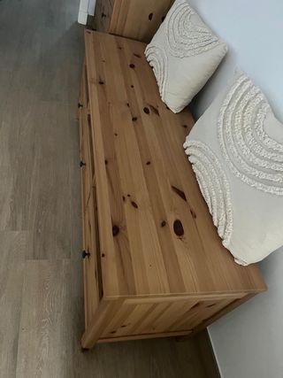 Conjunto de dormitorio compuesto por una cómoda y una mesita de noche en buen estado. Ambos muebles presentan algún signo de desgaste derivados del uso habitual. El pack incluye: - Cómoda de madera con 6 cajones. - Mesita de noche de madera con 1 cajón y estante. Preferiblement venta conjunta pero se escuchan ofertas por separado. Cualquier duda preguntar :). Medidas: - Mesita de noche: Alto: 85cm Ancho: 50cm Profundidad: 36cm - Cómoda Alto: 126cm Ancho: 80cm Profundidad: 39cm