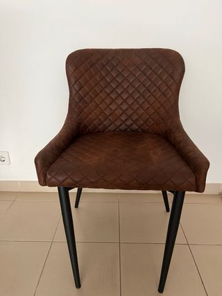 Elegante silla de comedor con un diseño moderno y confortable. - Asiento acolchado con acabado capitoné. - Patas metálicas negras.