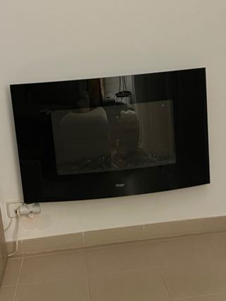 Chimenea eléctrica con un diseño moderno y elegante, perfecta para añadir un toque acogedor a tu hogar. - Marco frontal curvo de cristal negro. - Efecto de llama realista y ajustable. - Incluye kit de montaje a pared. - Mando a distancia. - Intensidad de llama regulable.