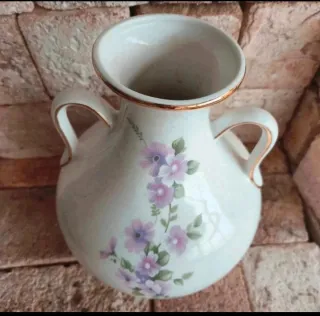 Jarrón Vintage Porcelana Flores Rosas y Moradas