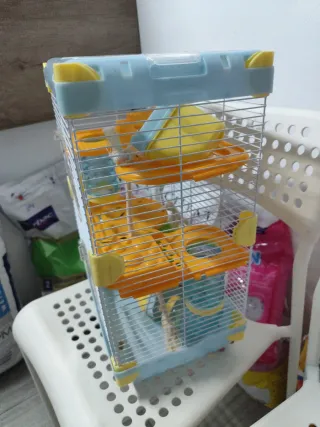 Jaula de varios niveles para hámster, con accesorios incluidos para su entretenimiento y comodidad. - Estructura de alambre con base y detalles en plástico. - Incluye túneles y plataformas. - Bebedero y comedero.
