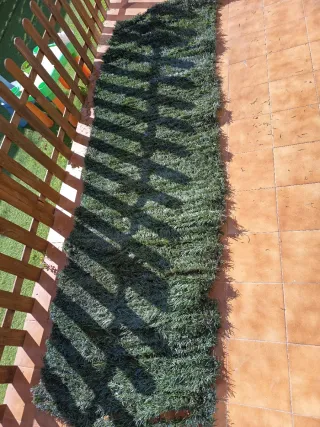 Dos rollos 15€ cada uno de seto artificial para ocultación, cada uno de 1x3 metros. Ideal para jardines y terrazas. - Fácil de instalar. - Aspecto natural y frondoso.