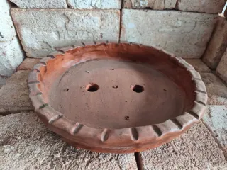 Conjunto de dos macetas de cerámica, ideales para bonsáis. Presentan un diseño rústico y son perfectas para dar un toque natural a tu espacio. Medidas:14 centímetros de diámetro x 6 centímetros de alto x 4 centímetros de profundidad Medidas:16 centímetros de diámetro x 6 centímetros de alto x 4 centímetros de profundidad - Maceta de terracota con borde ondulado. - Maceta de terracota con forma irregular.