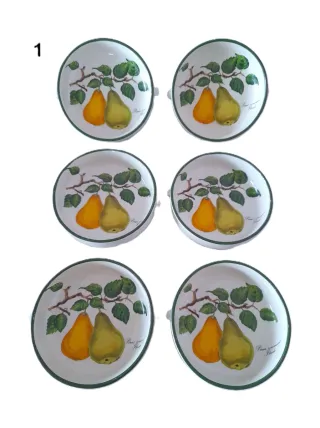 Platos aperitivos - Dos 30€ , Unidad 20€ . Envío disponible . Medidas aprox en foto . Bien conservado a pesar del tiempo . N°1 - Marca Isard . Porcelana . Hechos al horno . 6 Platos con altura . Ideal para aperitivos , Fuentes para horno , ... N°2 - Juego 5 Cuencos aperitivos . Formas de pájaro . Cristal de color