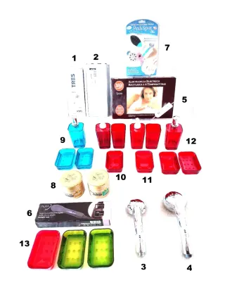 Accesorios Baño - Precio en descripción . Todo a estrenar . Envío superior a 10€ . N°1 , N°2 - 12€ Unidad . Alcachofa ducha . N°3 , N°4 - 5€ Unidad . Alcachofa ducha . N°5 - 20€ . Almohadilla eléctrica . Marca Daga Lujo . Poco uso . N°6 - 5€ . Cepillo alisador pelo . Viaje . Precintado . N°7 - 5€ . Aparato para pies . Precintado . N°8 - 5€ . 2 Mascarillas Pantene . Precintadas . N°9 - 5€ . Dosificador + 2 Jaboneras . N°10 - 5€ . Dosificador + Vaso + Jabonera . N°11 - 5€ . Dosificador + Vaso + Jabonera . N°12 - 5€ . Dosificador + 2 Jaboneras . N°13 - 5€ . 3 Jaboneras