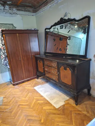 Conjunto de muebles antiguos con un diseño clásico y elegante. - Acabado en tonos marrones. - Combinación de materiales nobles. - Se pueden ver en barcelona (Dirección por privado) - Precio a negociar