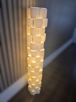 Lámpara de pie con un diseño moderno y elegante. - Estructura de papel. - Color beige y blanco.