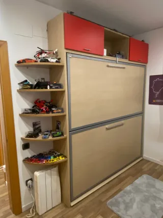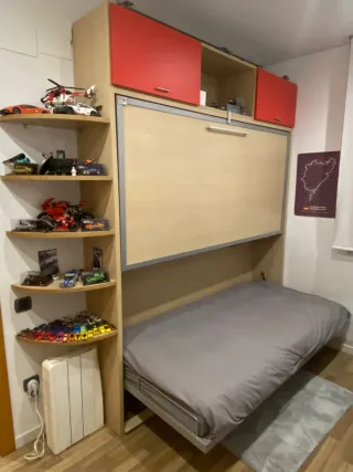 Habitación en buen estado comprada en Kibuc, de muy buena calidad. Formada por: - cama superior (190x90 cm) con escalera metálica que se esconde - cama inferior (180x90 cm) extraible con tres cajones (no se incluyen los colchones) - escritorio extraible muy amplio (190x100 cm) - armario (243x92x60 cm)
