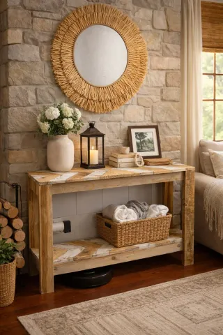Consola baño madera reciclada rústica piedra