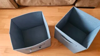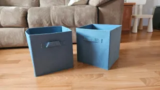 Set de dos cestos de tela para organizar tu hogar. Son prácticos y fáciles de usar. - 28x28x28 - Plegables - Diseño cúbico. - Asas laterales para facilitar el transporte.