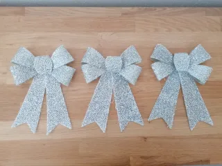 REGALO 3 LAZOS CON CUALQUIER COMPRA DE ARTÍCULOS DE NAVIDAD. Conjunto de tres lazos decorativos, perfectos para añadir un toque festivo. Medidas: 20x16cm. Ver fotos. - Diseño brillante. - Ideales para adornos navideños. Possibilitat de fer entregues en mà a Llagostera, Sils, Caldes Malavella, Vidreres i Sta Coloma de Farners.