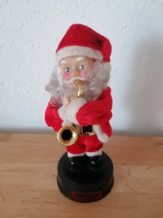 Figura de Papá Noel tocando el saxofón al ritmo de Jingle Bells. Funciona con 2 pilas, no incluídas. Un adorno festivo para estas navidades. Medidas en las fotos. Tiene la ropa un poco sucia en algunos lugares, esta es la razón del precio. Possibilitat de fer entregues en mà a Llagostera, Sils, Caldes Malavella, Vidreres i Sta Coloma de Farners.