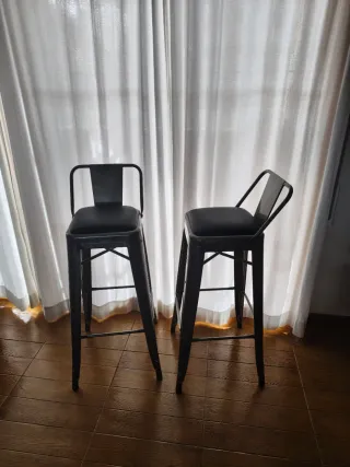 Vendo taburetes altos de metal pulido estilo industrial. Las fotos son de la tienda (y un par mías) porque están casi igual: sin golpes raros, sin óxido sorpresa y sin esa pata traicionera que convierte el desayuno en deporte extremo. Estructura sólida, estables y con presencia. Ese estilo industrial que hace que hasta un café rápido parezca una reunión importante. No crujen, no bailan y no te hacen replantearte tus decisiones al sentarte. Perfectos para barra de cocina o espacio moderno. Resistentes, minimalistas y con carácter. Aquí no hay postureo, hay metal del bueno.