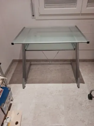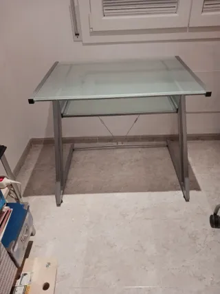 Taula d'escriptori amb safata inferior extraible. Disseny elegant Estructura alumini Base vidre Amplia zona de treball
