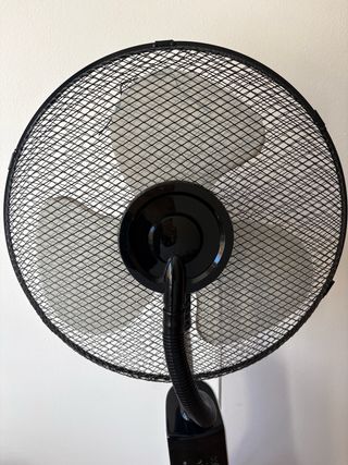 Ventilador de pie negro y blanco