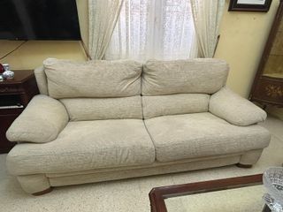 Vendo conjunto de sofás compuesto por sofá de 3 plazas y sofá de 2 plazas, comprados en la tienda La Carpintería. Tapicería en tono beige claro, muy combinable y luminosa. Muy cómodos y amplios Diseño atemporal y elegante Bien cuidados, uso doméstico Estructura robusta y de calidad Se venden juntos o por separado. Ideales para salón principal o segunda vivienda. Recogida en domicilio.