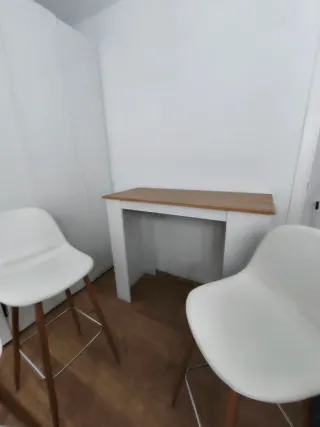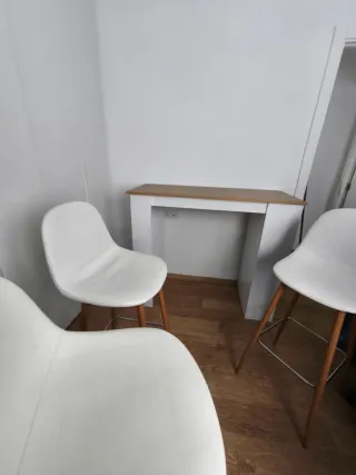 Conjunto de 3 taburetes con un diseño moderno y estilizado. - Patas de madera. - Estructura de metal. En total son 60 euros por los 3