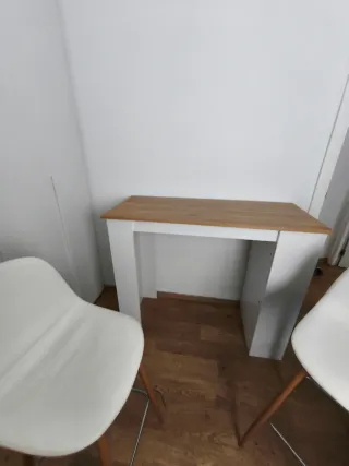 Mesa alta con un diseño moderno y elegante, perfecta para cualquier espacio. - Combinación de colores blanco y madera. - Estructura robusta.