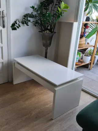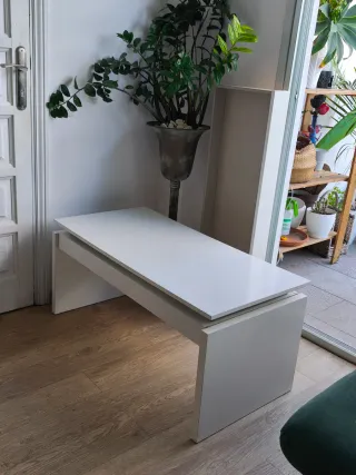 Mesa de centro con diseño moderno y funcional. - Acabado en blanco brillante. - Superficie elevable para mayor comodidad. - Estructura robusta y estable.