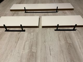 Conjunto de estanterías flotantes de Brico Depot, en perfecto estado. - Diseño moderno y minimalista. - Soportes metálicos incluidos. -Me costaron 30€ cada una de las pequeñas y la grande 45€ medidas de la grande 1,18x23x4