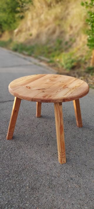 Mesita de centro redonda realizada artesanalmente con madera recuperada de pino. Pieza única, trabajada a mano, respetando vetas y carácter natural de la madera. Diseño de inspiración nórdica, con patas oblicuas y detalles decorativos, acabada con aceite natural. Medidas aproximadas: 70 cm de diámetro y 50 cm de altura. También realizo muebles por encargo, adaptando medidas y acabados. 💰 Precio no negociable. 🧾 Se emite factura en cada compra.