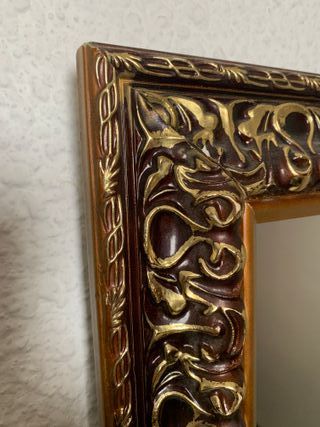 Elegante espejo con un marco detallado. Recogida en Santa Pola Centro. - Marco con diseño intrincado. - Acabado en tonos dorados y marrones.