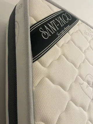 Colchón marca Sant-Yago en perfecto estado, totalmente nuevo y sin apenas uso. Ideal para quien busque un descanso de calidad a un precio mucho más bajo que en tienda. • Medidas: 90 cm x 190 cm (cama individual). • Material: Viscoelástico de alta densidad que se adapta al cuerpo. • Tratamiento Aloe Vera: Tejido suave al tacto, transpirable e hipoalergénico (antiácaros y antibacterias). • Firmeza: Media-alta, excelente soporte para la espalda. • Estado: Impecable, limpio y sin manchas (se puede ver sin compromiso).